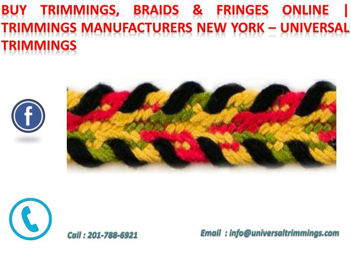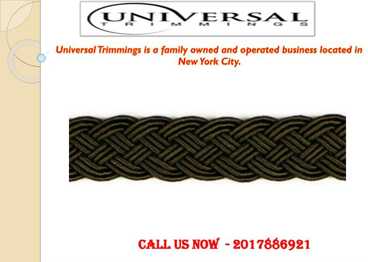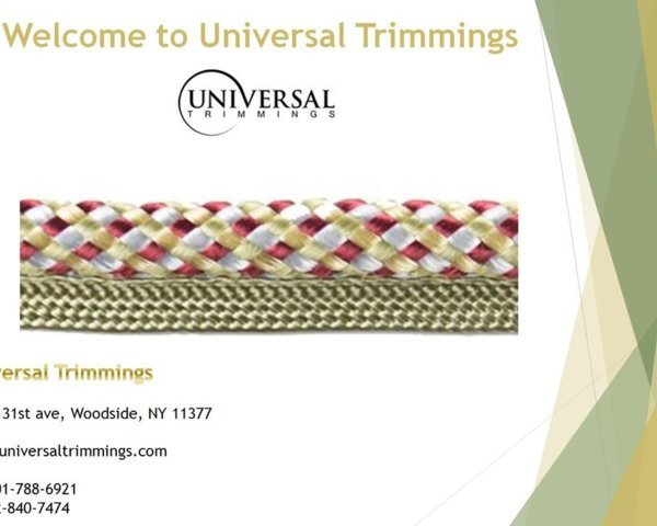 nUniversal Trimmings is a family owned and operated business located in New York City. Our inventory is too vast to display online. If you don\'t see what you need, don\'t be uncertain to contact us. We are happy to modify any order, and make the process as flawless as possible.