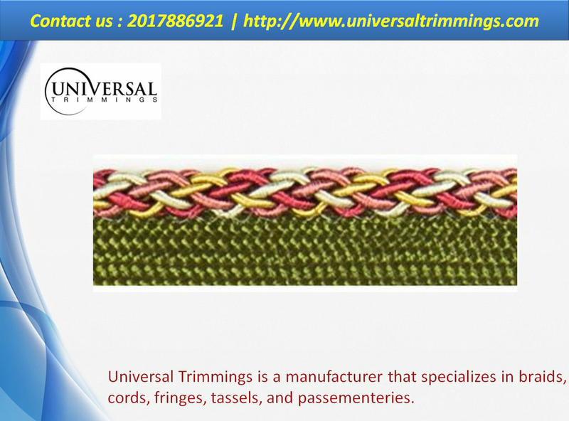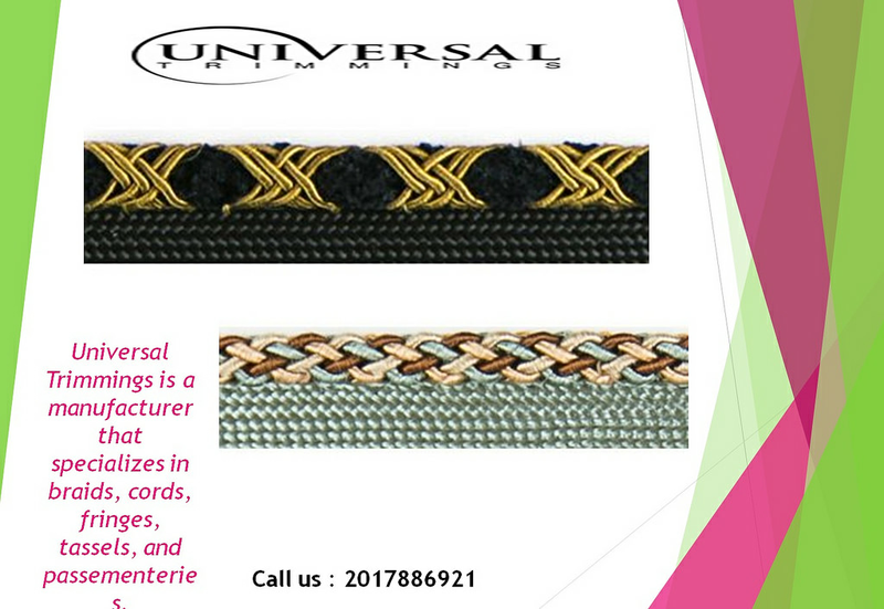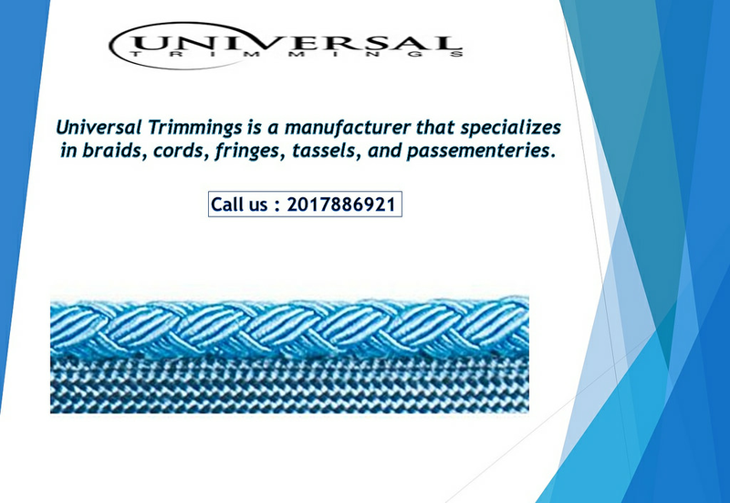 Universal Trimmings is a manufacturer that specializes in braids, cords, fringes, tassels, and passementeries.